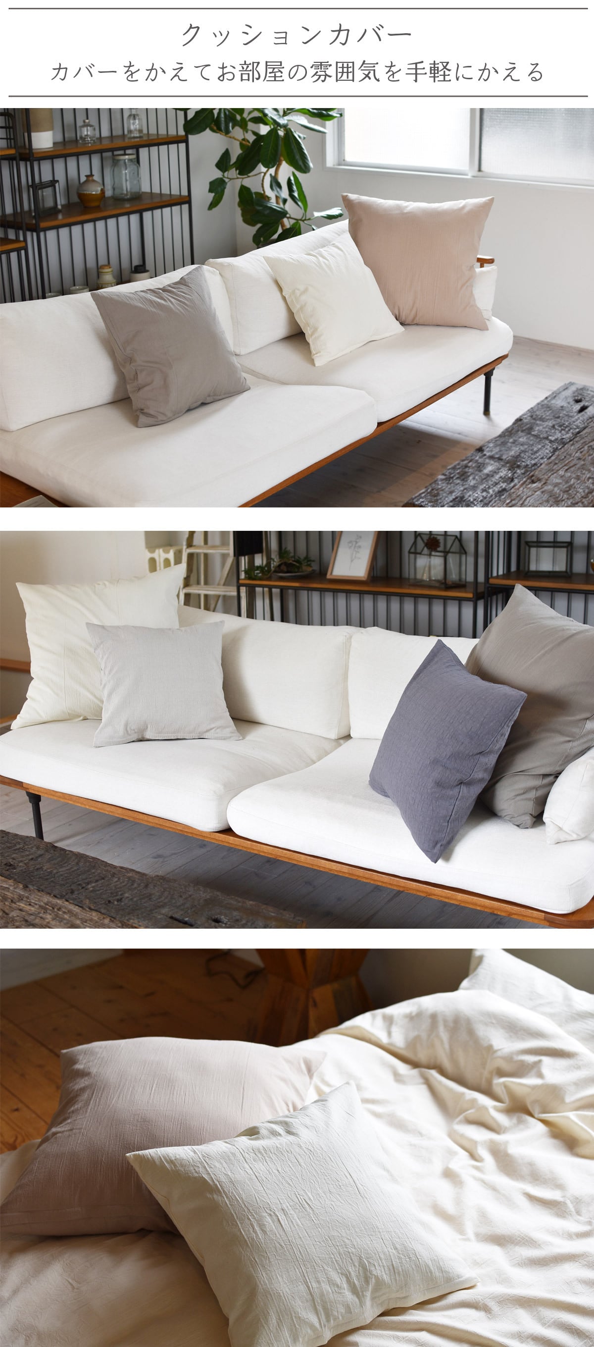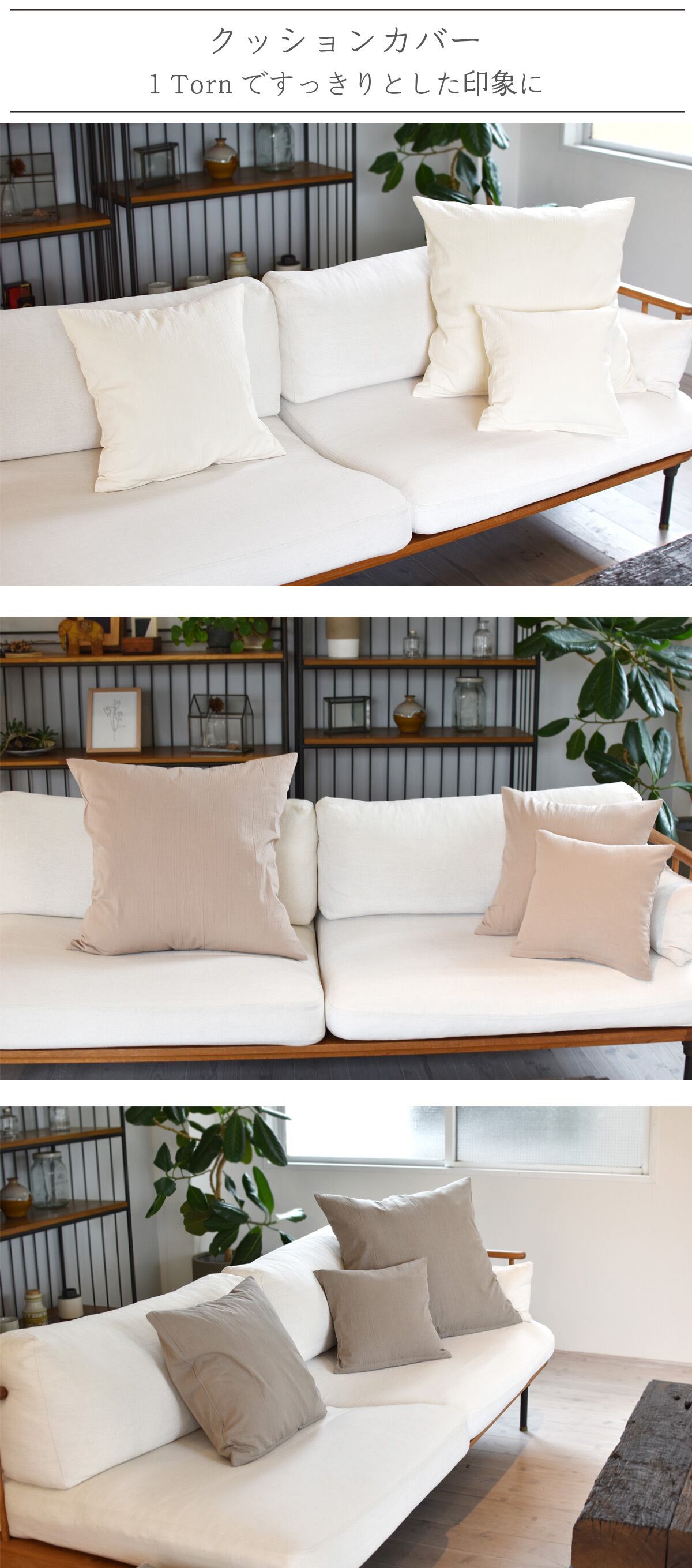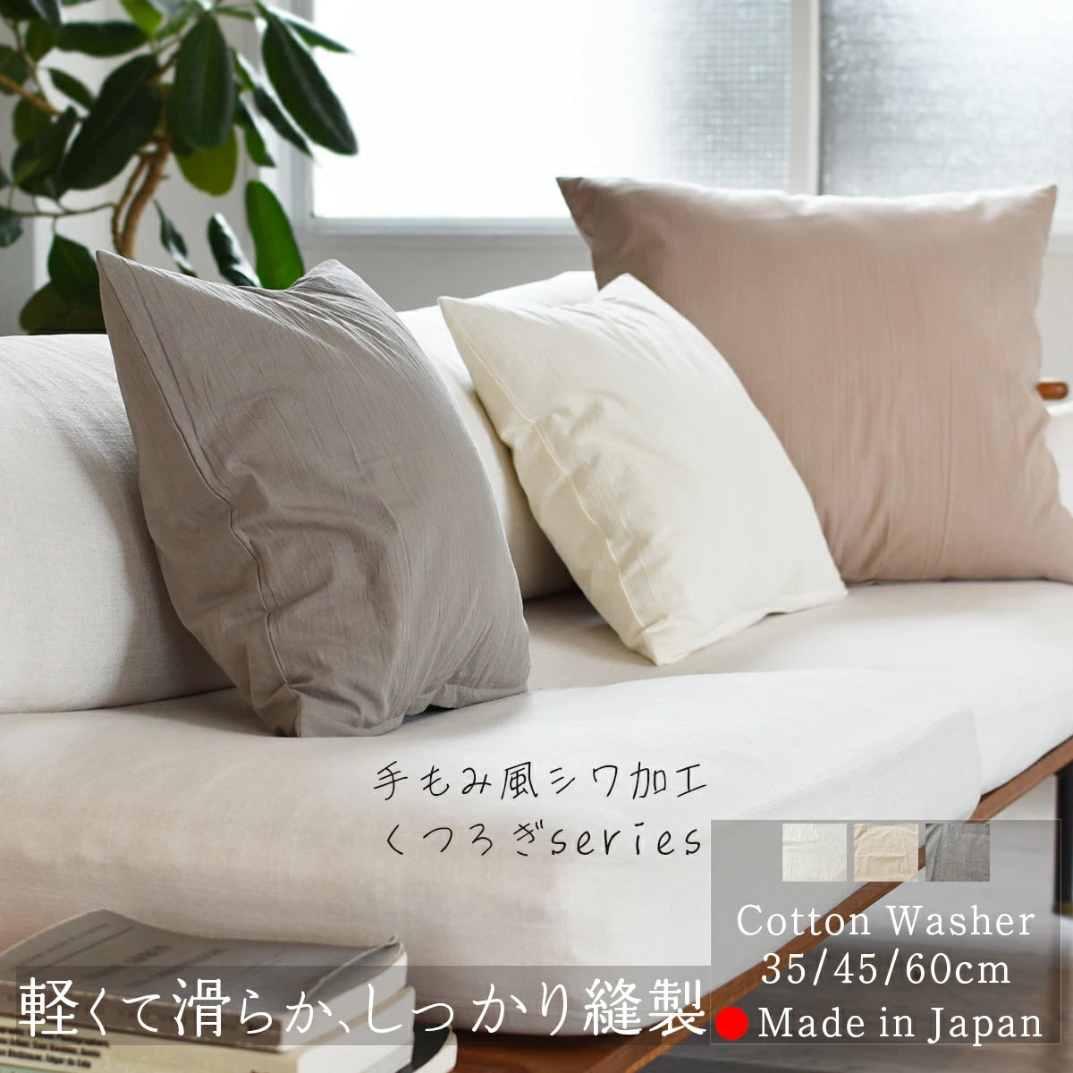 上品なシワ感がナチュラルな風合い コットンワッシャー クッションカバー 季節を選ばない40番手の生地を使用したコットンワッシャー
