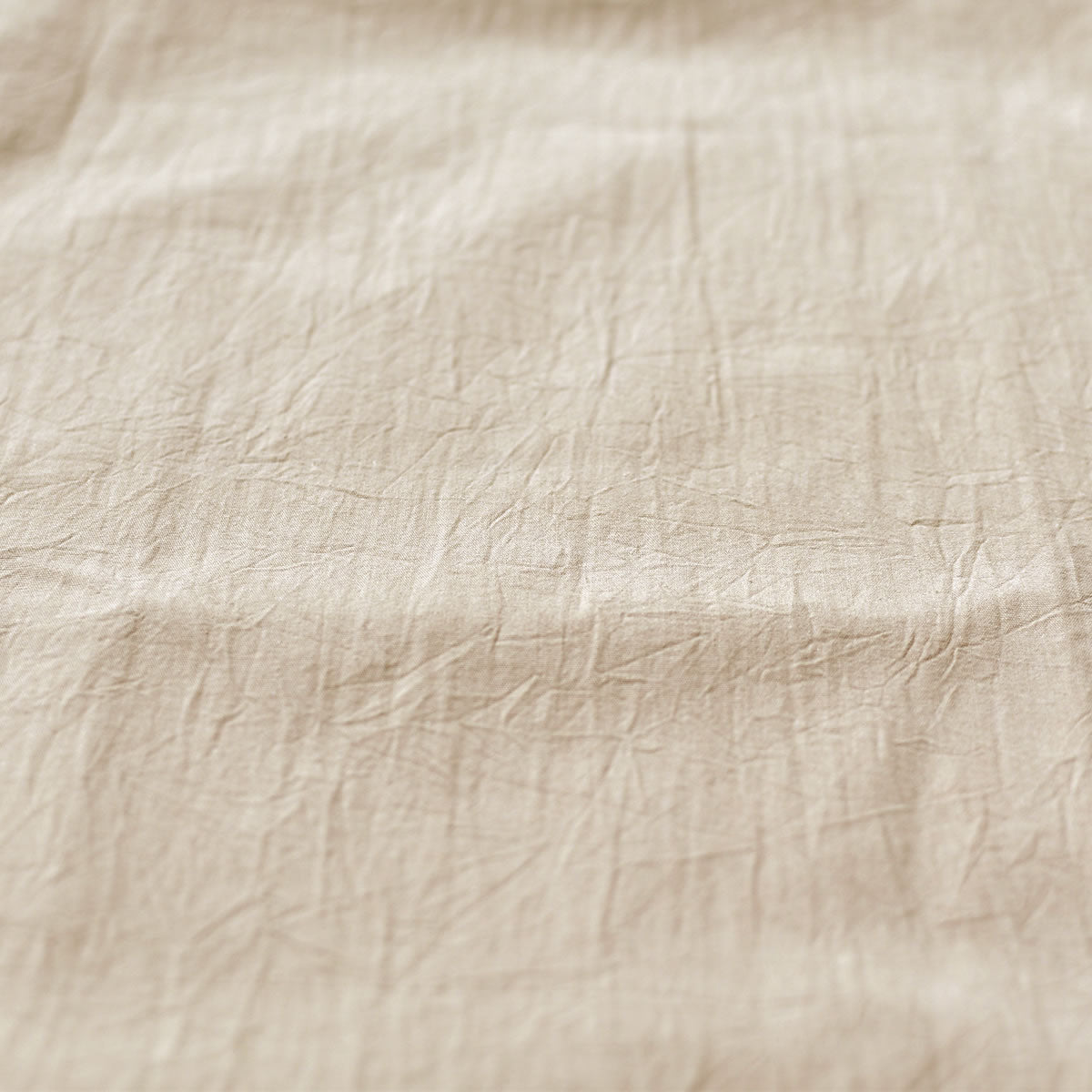 目の詰まった細番手の生地を使用しているので、ラフになりすぎず、上品なシワ感がナチュラルな風合いを演出します。また、手もみ風シワ加工を施しているため、自然でナチュラルな風合いを楽しむことができます。やわらかな綿100%の生地は通年で長くご愛用いただけます。